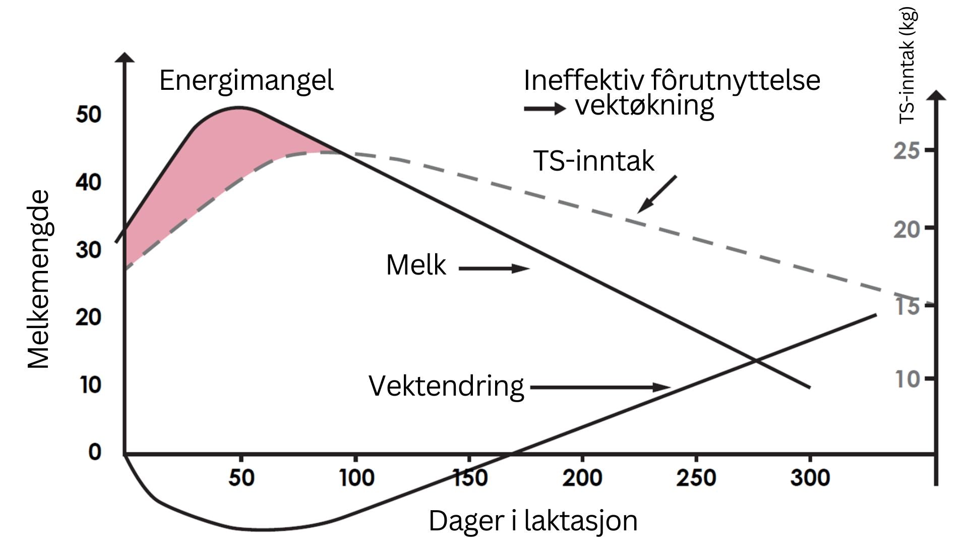 I de første ukene etter kalving kan kyr oppleve redusert fôrinntak, samtidig som energibehovet øker drastisk. Dette fører ofte til at kua begynner å mobilisere kroppsfett for å dekke energibehovet, noe som igjen øker risikoen for ketose og leverforfetting.