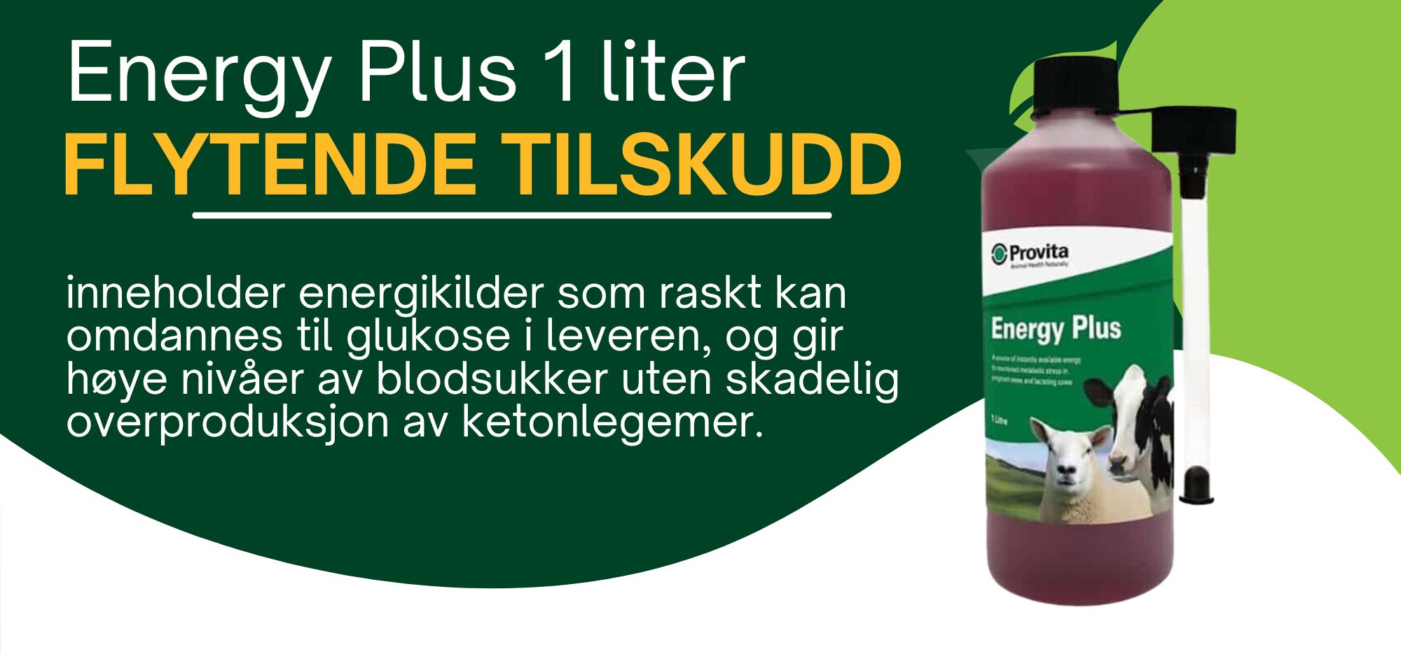 Energy Plus er et flytende tilskudd laget for å gi raskt tilgjengelig energi til melkekyr i krevende faser. Det brukes særlig etter kalving, men også når kua viser tegn på lav appetitt, svakhet eller ketose.