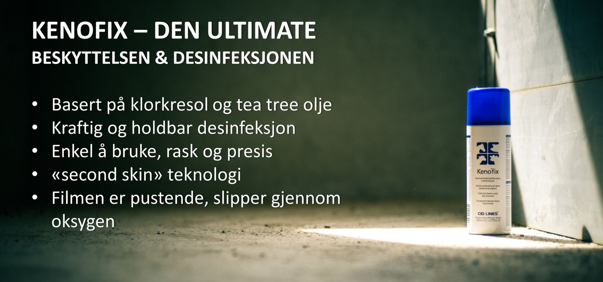 Kenofix gir derfor en enkel og rask løsning for å beskytte dyr mot infeksjoner og fremme heling i et bredt spekter av situasjoner, fra kalving til daglige rifter. Dette gjør produktet til et viktig verktøy for enhver bonde som ønsker å sikre best mulig dyrehelse og produktivitet.