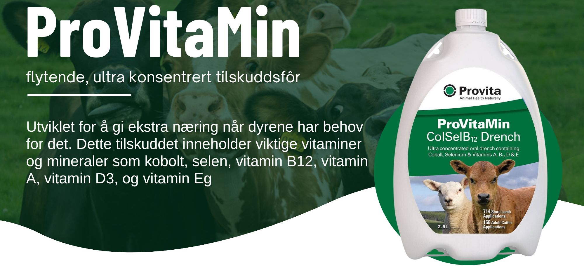 ProVitaMin ColSelB12 er et ultra-konsentrert, flytende tilskuddsfôr som inneholder: