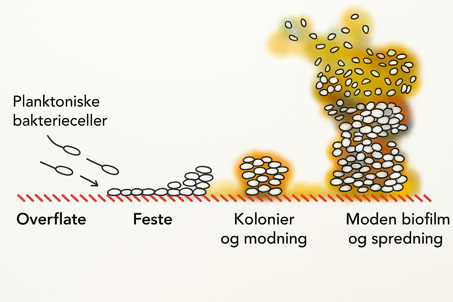 💡 Visste du at biofilm tåler opptil 1 000 ganger mer desinfeksjonsmiddel enn frie bakterier?