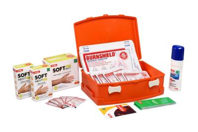 Skrin for behandling av mindre brannskader. Inneholder Burnshield® brannkompresser i forskjellige størrelser, flaske med Burnshield® Hydrogel og Soft NEXT limfritt plaster. Robust og kraftig koffert som beskytter innholdet mot smuss, støv og fukt. Praktisk bærehåndtak. Leveres med brakett for veggmontasje. Brukes som førstehjelp ved ytre og til dels dype brannskader. Den lindrende gelen kjøler raskt ned den brannskadede huden slik at risikoen for alvorlige skader i dypere hudlag og utvikling av blemmer reduseres. Burnshield® gel er vannbasert og består av 96% vann og har en konsistens som gjør den lett å påføre og at den blir værende på huden. Gelen skylles enkelt av med vann og irriterer ikke huden. Innhold: Plaster limfritt Soft NEXT 6 cm x 1 m (2 stk.), plaster limfritt Soft NEXT 6 cm x 4,5 m (1 stk.), brannskadekompress 10 x 10 cm (6 stk.), brannskadekompress 20 x 20 cm (3 stk.), branngel flaske 125 ml (1 stk.), branngel pose 3,5 ml (5 stk.), førstehjelpshefte.