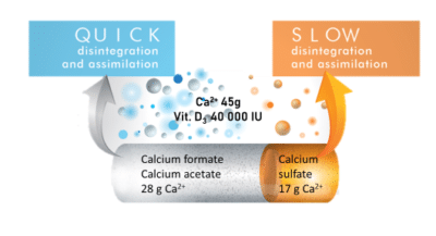 KOMPLETT EN-GANGS TILSKUDD MED 45g Ca⁺⁺ 1 bolus med en vekt på 175g består av to deler, med forskjellig nedbrytning og frigjøring av kalsiumioner.