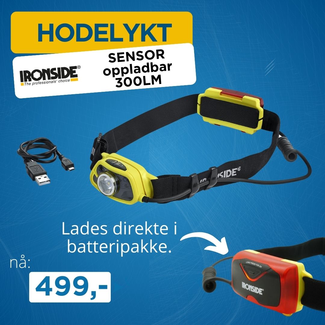 Hodelykt Sensor oppladbar Ironside 300lm (555645)