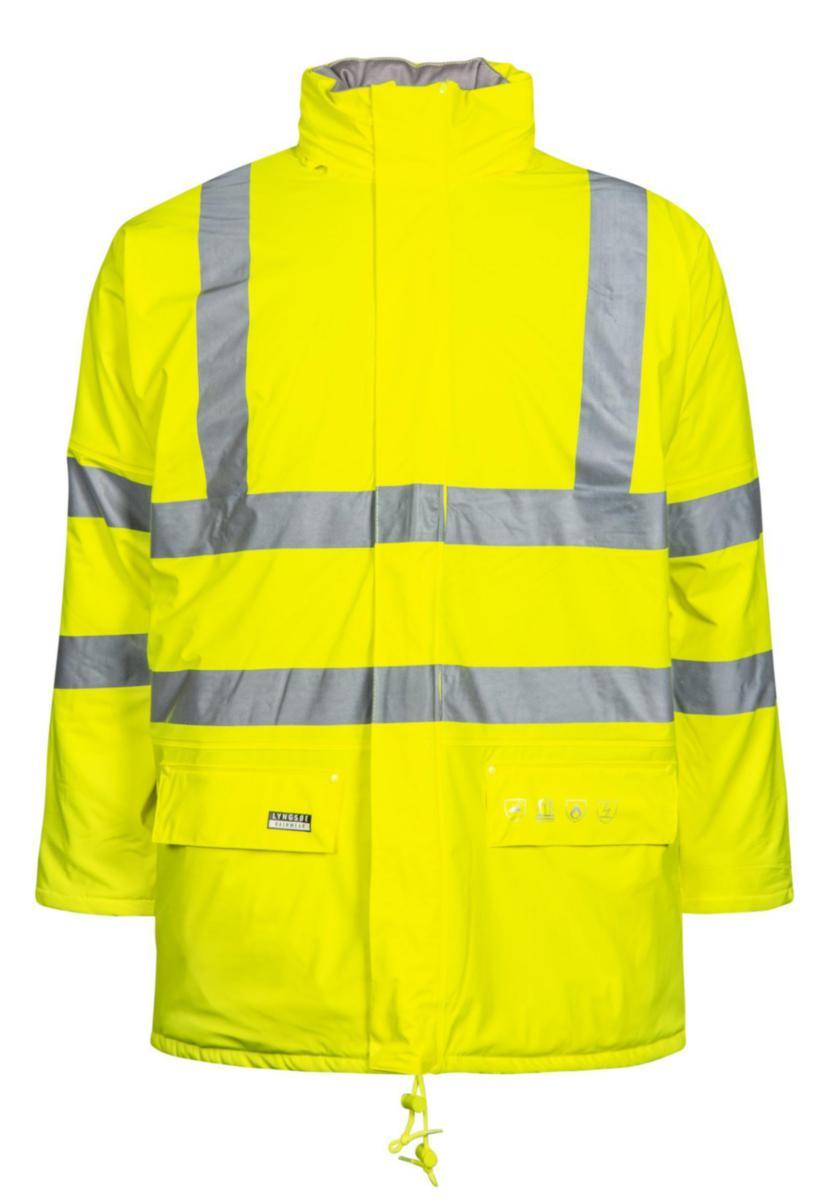 Regnjakken fôret Lyngsøe Multinorm Gul er en flammehemmende HiVis vinterregnjakke designet for å gi optimal beskyttelse under krevende værforhold. Denne jakken kombinerer høy synlighet med robust PU-kvalitet, noe som gjør den ideell for bruk i bygg- og industrisektoren.