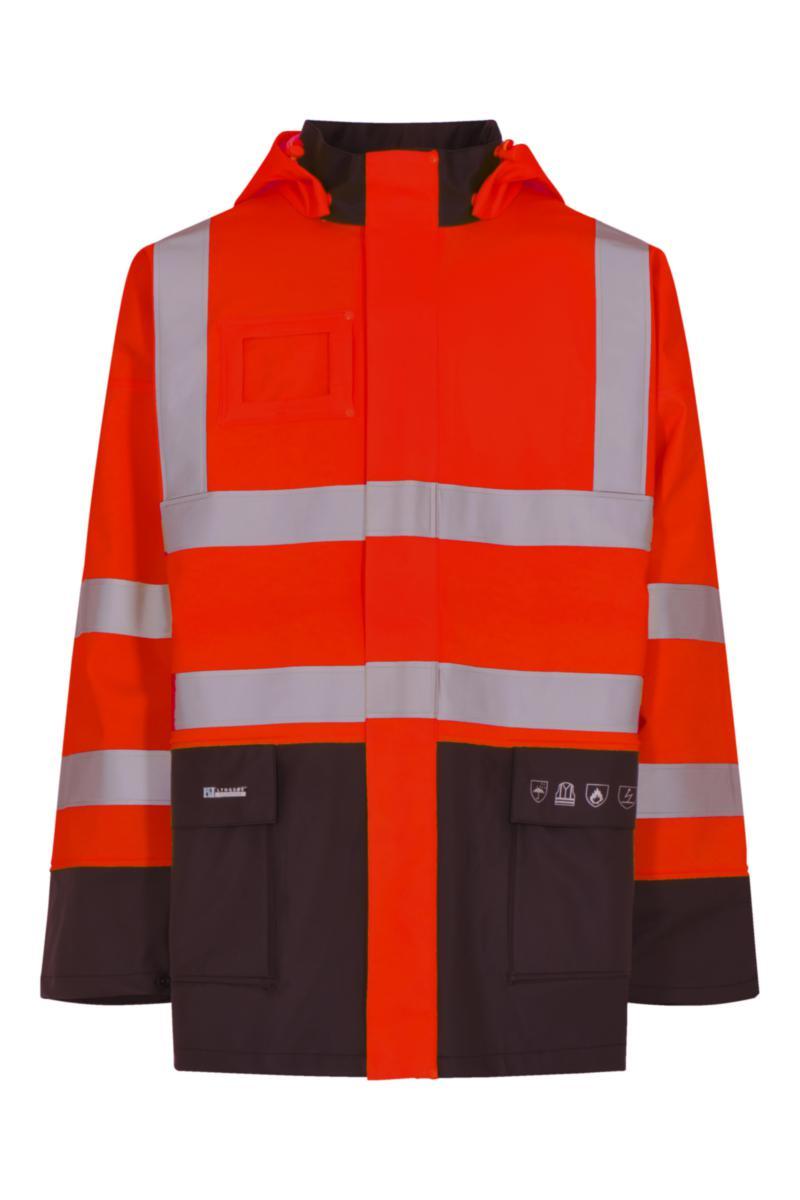 Lyngsøe Saturn HiVis Flammeh. regnjakke er ideell for bruk i byggebransjen, industri og andre arbeidsmiljøer hvor sikkerhet og komfort er avgjørende. Med dens høye synlighet og beskyttende egenskaper, er den et utmerket valg for profesjonelle som arbeider under krevende forhold.