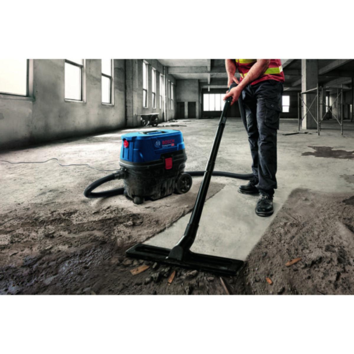 Bosch GAS 12-25 PL er en kraftig og allsidig våt-/tørrsuger i støvklasse L, designet for både profesjonelle håndverkere og krevende oppgaver i verksteder, byggeplasser og garasjer. Med en robust 1250 W motor, imponerende 65 l/s luftstrøm og 200 mbar vakuumtrykk, håndterer denne støvsugeren både vått og tørt avfall med høy effektivitet.