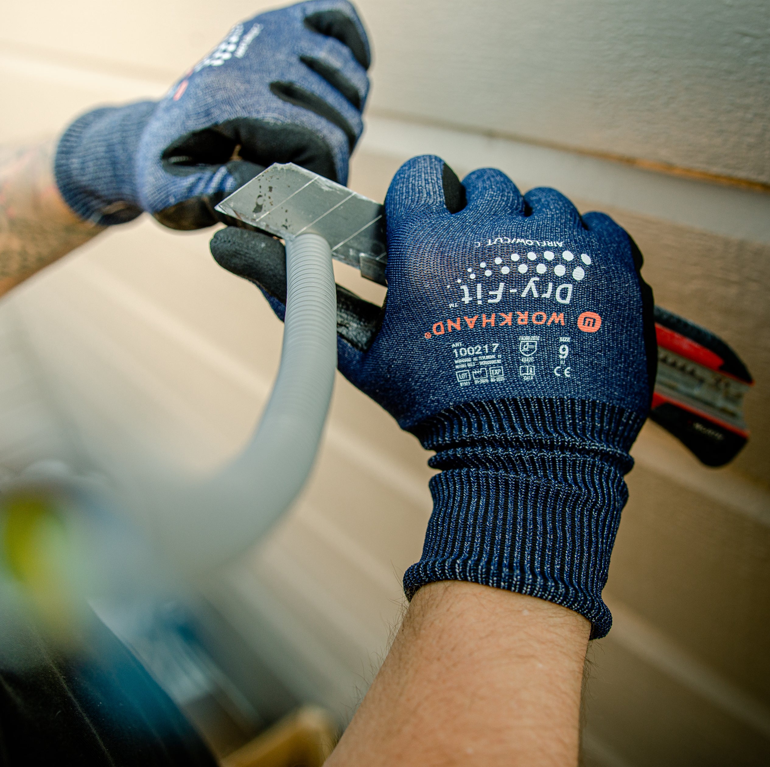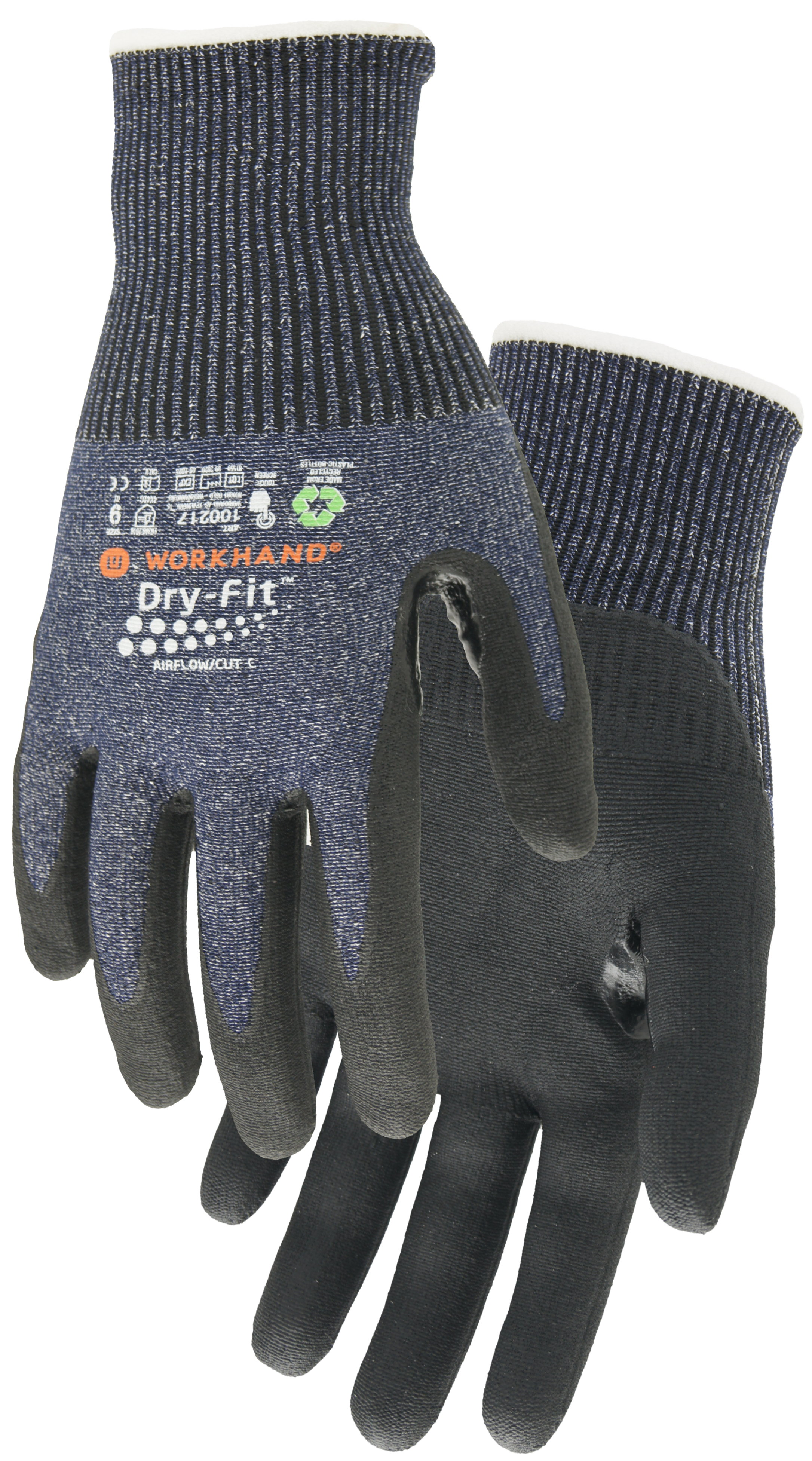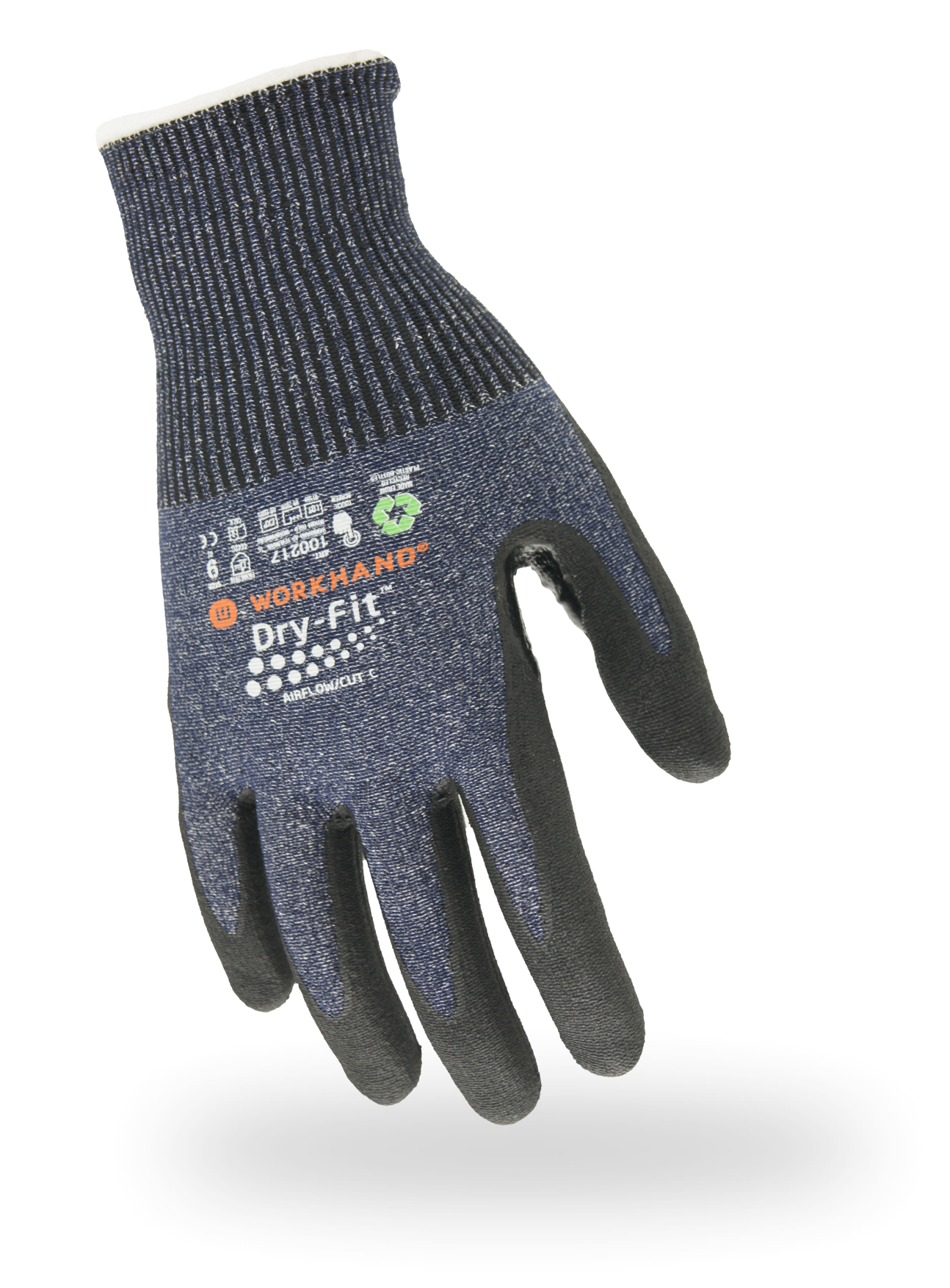 Glem alt du vet om monteringshansker, Workhand Dry-Fit® serien er de smidigste og mest komfortable hanskene du noensinne har opplevd. Forsterket kuttbeskyttelse (nivå C) som ikke går på bekostning av komforten. Miljøvennlig SmartFiber™ fra resirkulerte flasker gir deg en hanske med myk og kløfri innside som tar vare på hendene dine. Hansken sitter som støpt og kombinerer fleksibilitet og presisjon. Hanskene er Okeo-Tex® godkjent og vi bruker FSC®-sertifisering på vår emballasje.