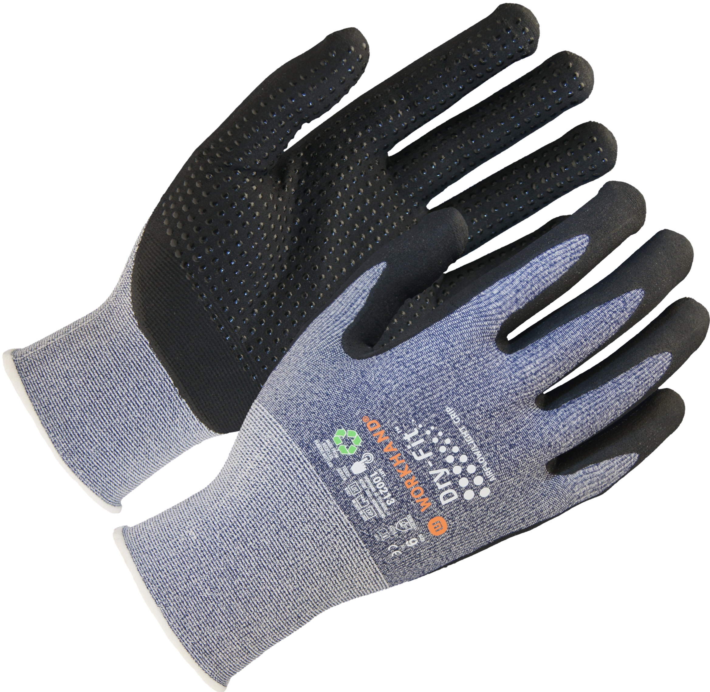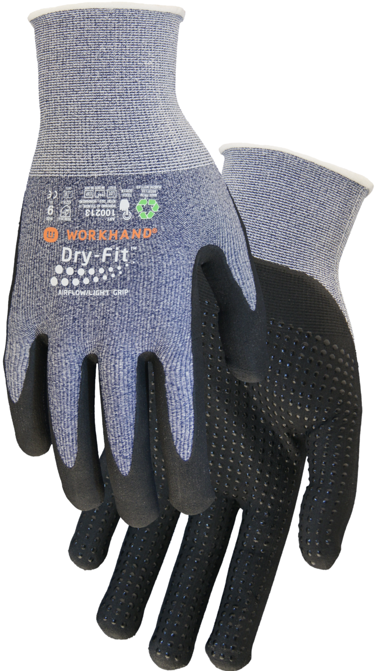 Glem alt du vet om monteringshansker! Workhand Dry-Fit® serien er de smidigste og mest komfortable hanskene du noensinne har opplevd. Her får du ultralette presisjonshansker med slitesterke nitrilknotter for ekstra grep. Miljøvennlig SmartFiber™ gir fleksible, myke og solide hansker. AirFlow™ sørger for full luftsirkulasjon og lar deg beholde hansken på hele dagen. Hanskene er Okeo-Tex® godkjent og vi bruker FSC®-sertifisering på vår emballasje.